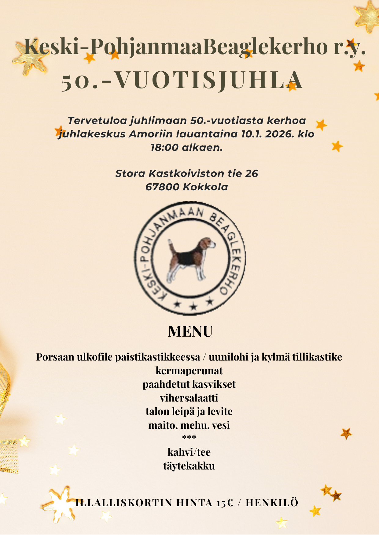 Tervetuloa juhlimaan 50.-vuotiasta Keski-Pohjanmaan beaglekerhoa!